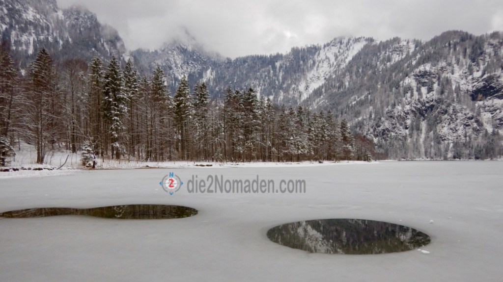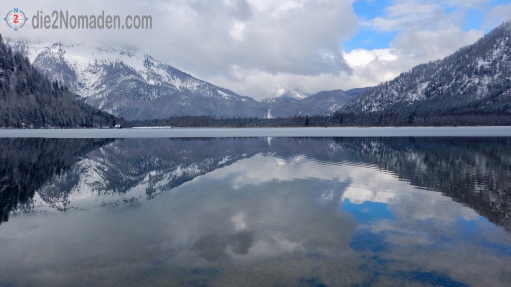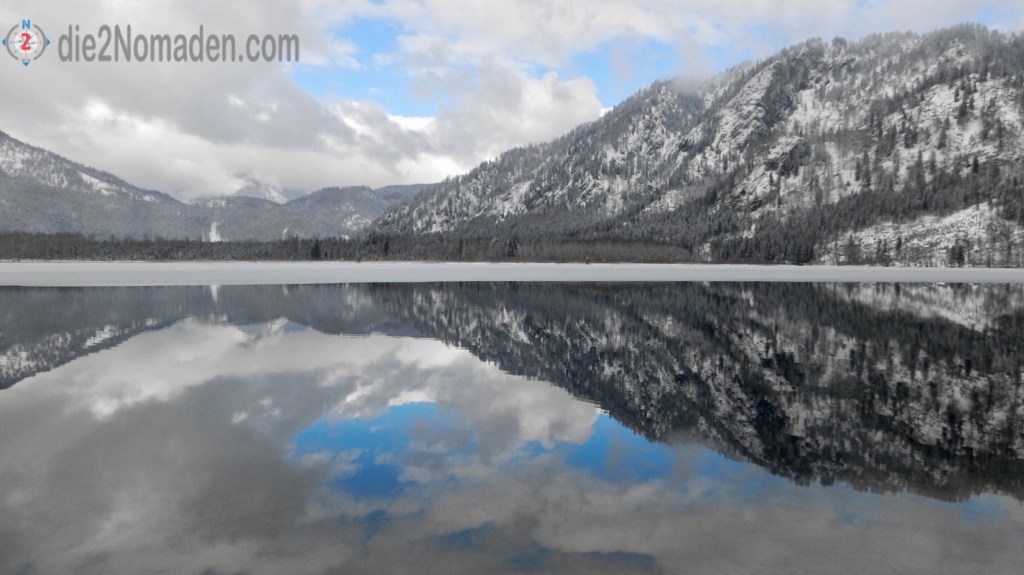 Im Winter, manchmal in eine Eisdecke gehüllt, lädt ein schöner Weg rund um den See zu einem Winterspaziergang durch den knirschenden Schnee ein. Im still liegenden, glasklaren Wasser spiegeln sich die Berge und die Luft ist klar und frisch.