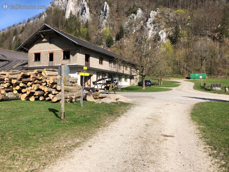 LOSENSTEIN. Wir erreichen das Gehöft Hintsteiner, fragen vorsichtshalber die Hausherrin, wo wir parken dürfen und stellen unsern Wagen an vorgesehener Stelle ab.