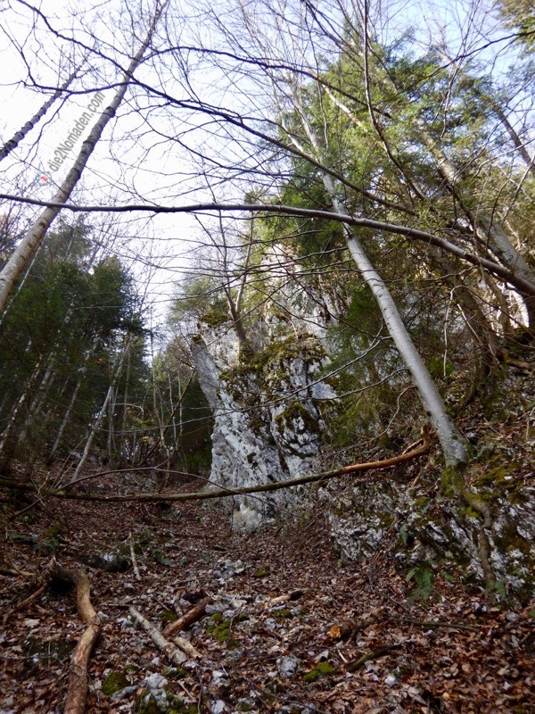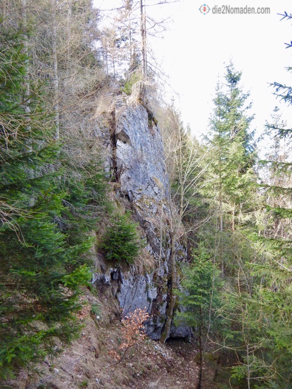 und schließlich ein Pfad durch den Wald und wir stehen vor einer Felsformation.