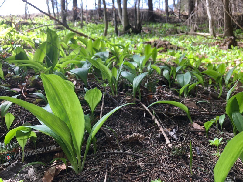 Zum Glück haben wir ein Sackerl für den duftenden Bärlauch mit und schnell sind ein paar Handvoll davon gepflückt und im Rucksack verstaut.