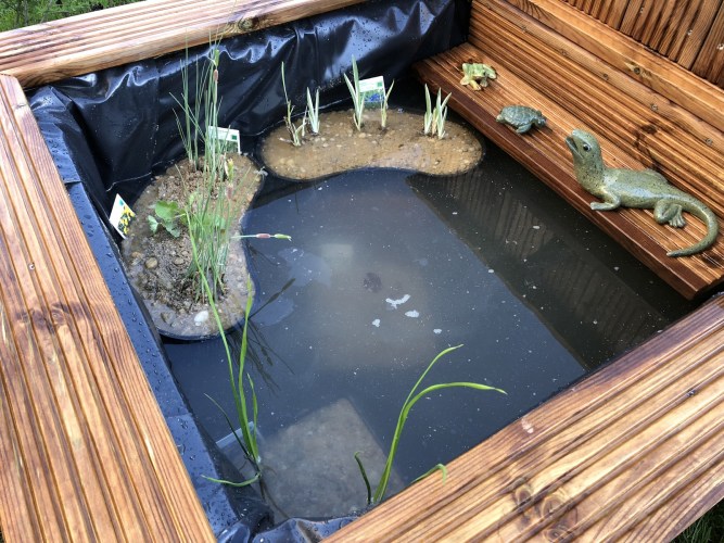 Gleichzeit haben wir auch die Bepflanzung des Teiches erledigt.
