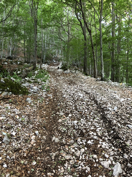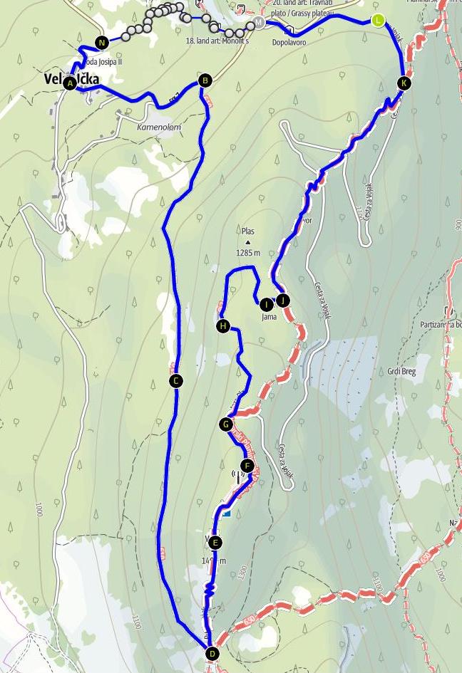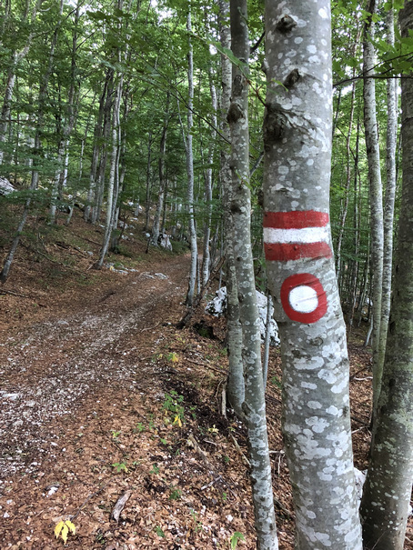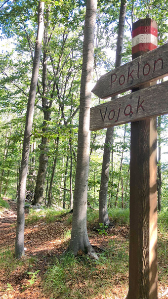 bevor es uns wieder linksseitig auf einem Wanderweg parallel zur Straße Richtung Poklon mit der schon bekannten Markierung führt.