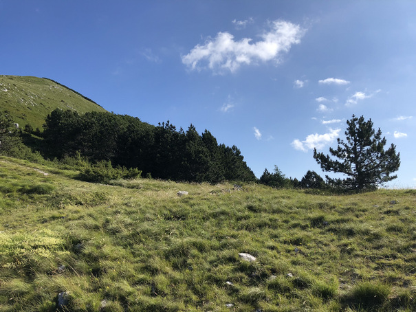 Zurück am Sattel geht es dann zügig direttissima in ca 30 min. zur höchsten Stelle.