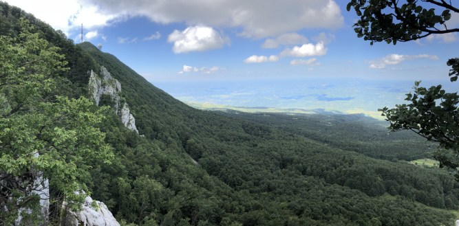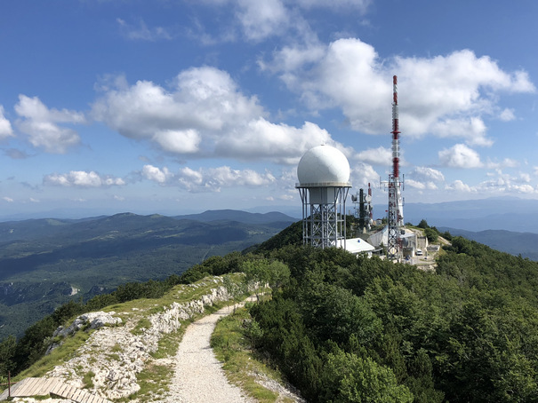 Auf dem Gebirgsmassiv des Ucka-Gebirges nahe Rijeka ist der Vojak mit seinen Sendern und dem Aussichtsturm der oberste Punkt.