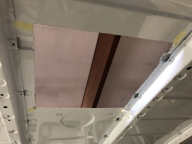 Um das dünne Blech des Daches für den Einbau auszugleichen, wurde ein Holzrahmen passend für das Dachfensters gebaut.