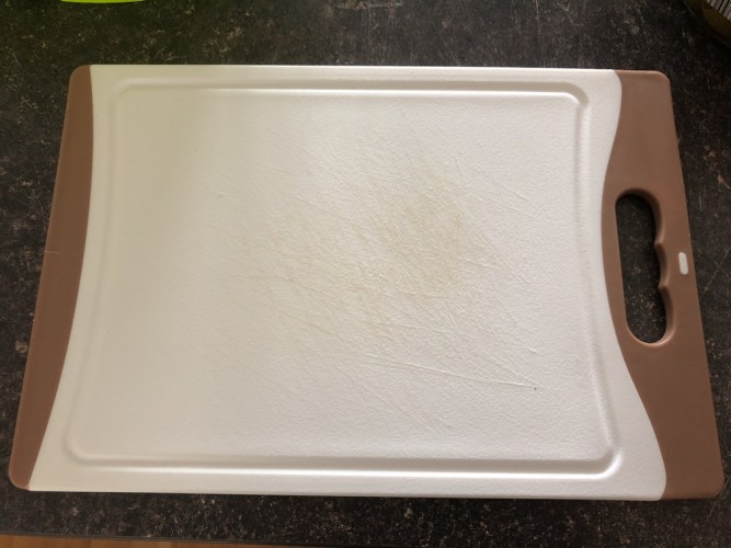 Dafür habe ich ein ca. 8 mm dickes Schneidebrett aus unserem Haushalt entführt und