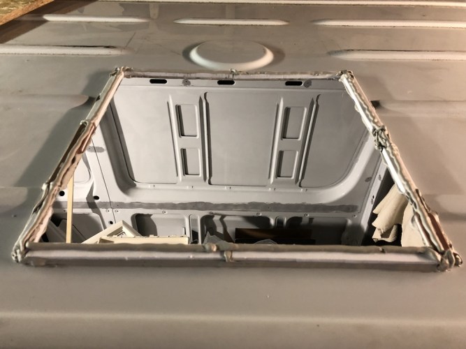 Diese klebten wir mit Dekasil 8936 zwischen die Sicken um eine eben Fläche für die Dachfenster zu erreichen.