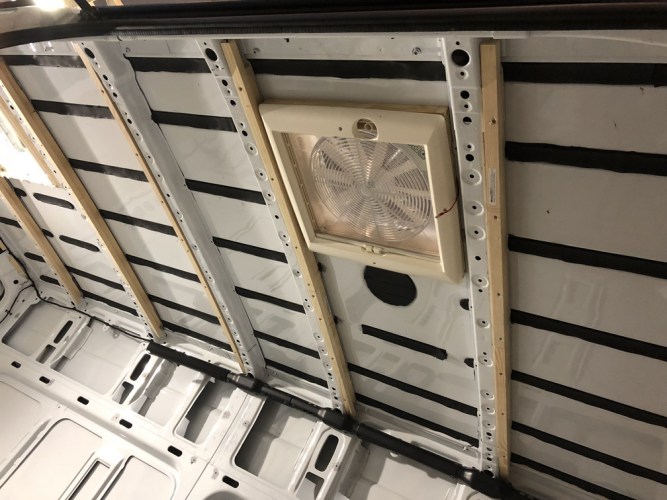 Die Restliche Dachstrebe, sowie die Sicken im Dach selber wurden nun ebenfalls mit 9 mm Armaflex beklebt.