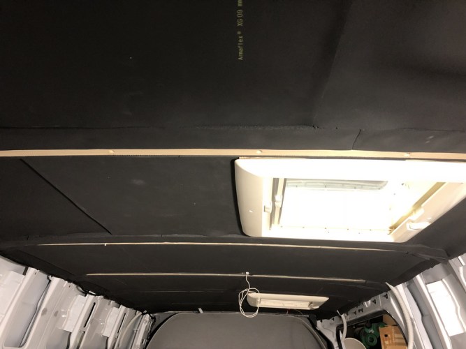 Die Restliche Dachstrebe, sowie die Sicken im Dach selber wurden nun ebenfalls mit 9 mm Armaflex beklebt.
