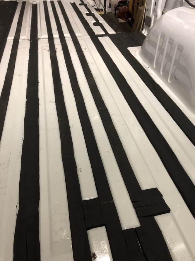 Da nun der Ausgleich der Sicken erreicht wurde, gab es zum Abschluss noch eine 9 mm Armaflex zwischen den Leisten.