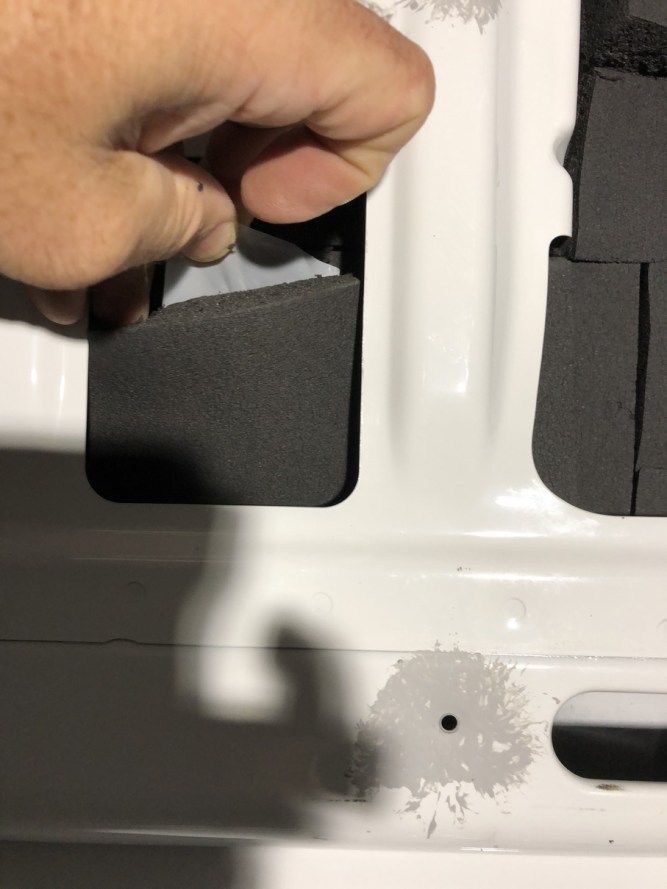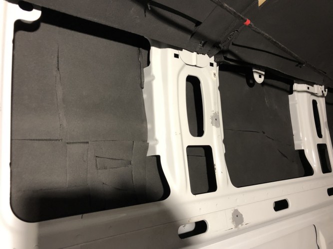 Zuerst haben wir den obere Bereich der Seitenwände mit Bremsenreiniger fettfrei gemacht und die tieferen Bereiche mit 9 mm Armaflex beklebt.