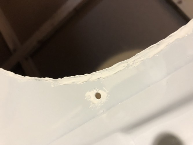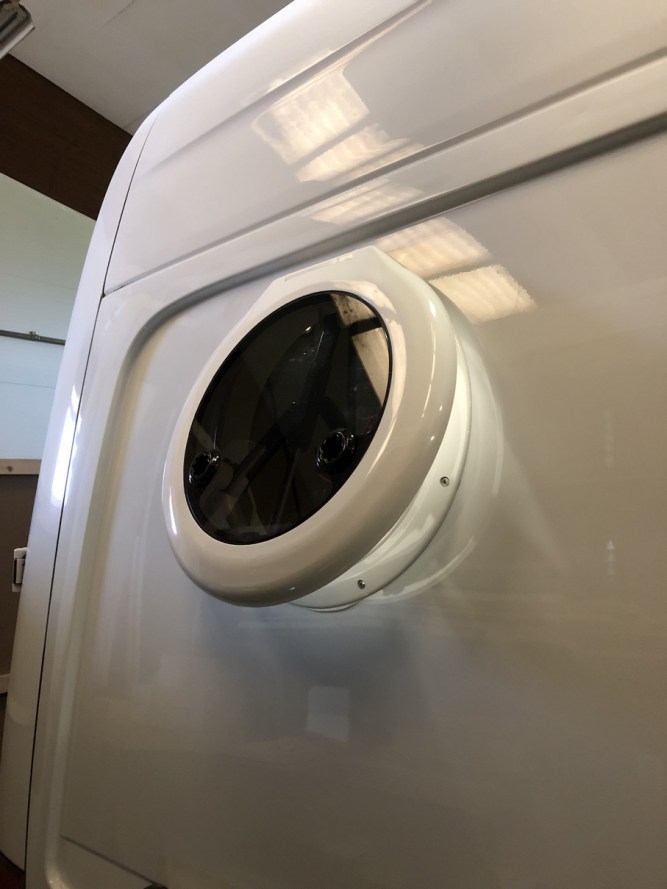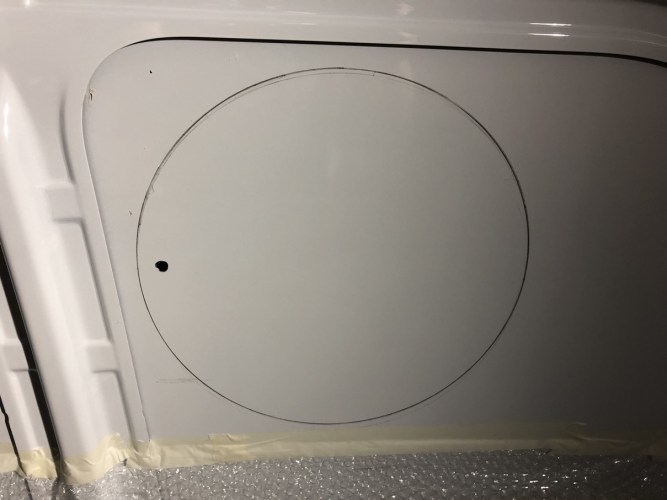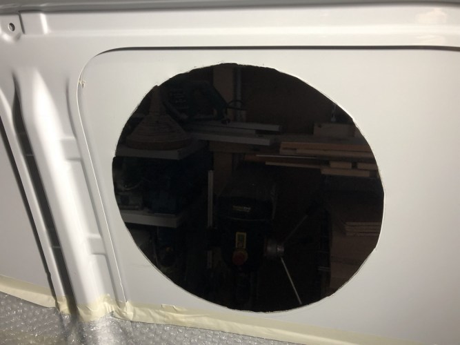 Danach machten wir uns daran, weitere Löcher in unseren Hr. Hofrat zu bohren. Die Montage der Bullaugen im Bereich der Betten war notwendig, um die Isolierung der Seitenwände zu vervollständigen.