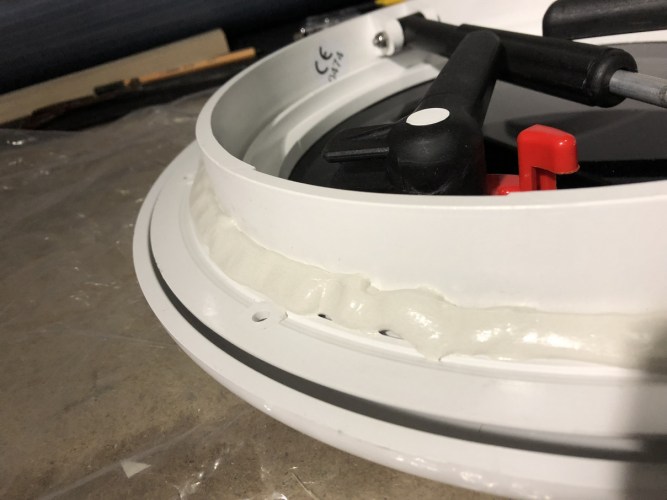 Die inneren Rahmen und die Bullaugen werden nun mit je 1 Strang Sikaflex 710 versehen