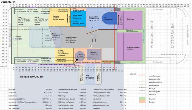 Unseren Plan für die Aufteilung im Kastenwagen haben wir aufgrund vieler Diskussionen, Vorschläge, Foren, eure Meinungen zum vorherigen Entwurf, usw. schon unzählige Male über den Haufen geworfen.