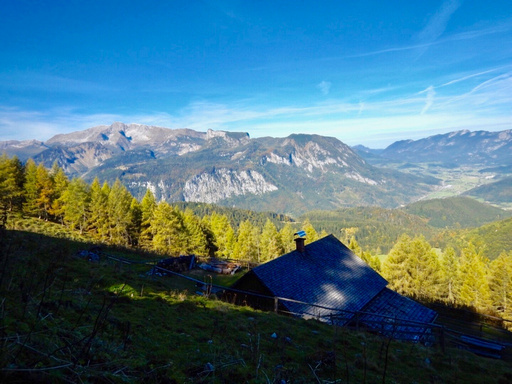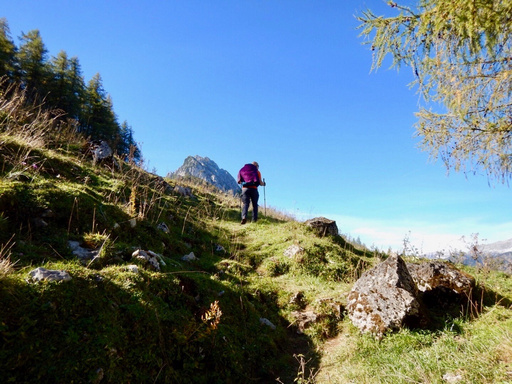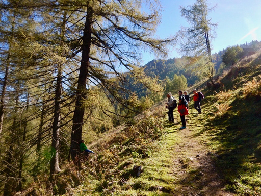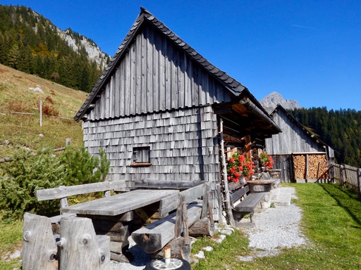 Gemütlich geht es weiter und wir freuen uns über diesen wunderschönen Herbsttag. Auf der Bacheralm machen wir kurz Rast und jausnen gemeinsam.