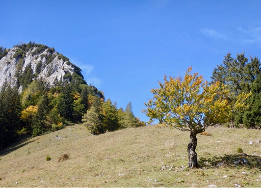 Noch ein Foto von einem wunderschönen knorrigen alten Baum im Herbstlaub und es geht bergab zum Phyrgasgatterl,
