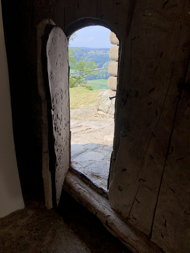 Für die Kinder unter uns Erwachsenen gibt es die Möglichkeit, sich als Hexe oder als Ritter darzustellen, indem man den Kopf durch metallene Modelle steckt und gut gelaunt erreichen wir die Burg.
