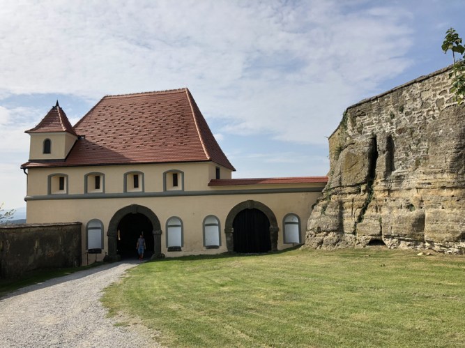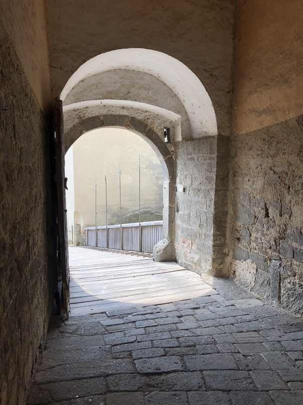 Schwitzend erreichen wir das Burgtor und gelangen in den Bereich innerhalb der Burgmauern.