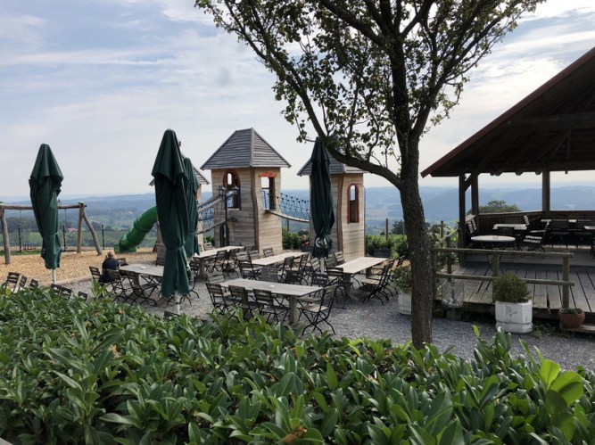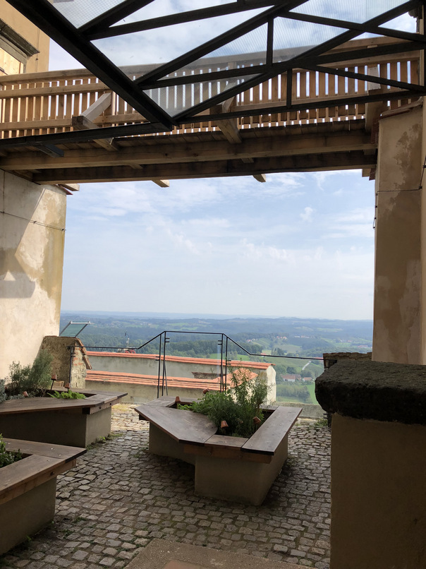wir beenden den Besuch der Riegersburg im Gastgarten der dortigen Gaststätte bei einem leckeren Glas Sturm und einem Stück Apfelkuchen.