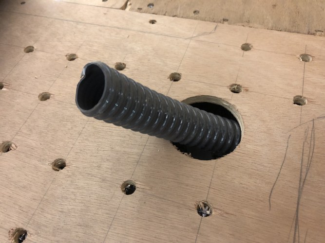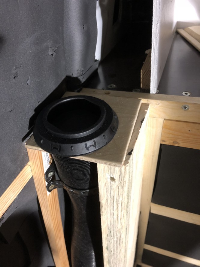 Für den Einbau der Nature Head, unserer Trockentrenntoilette, wird die Abluft durch einen zusätzlich Schlauch im Installationsschacht nach oben an die Decke gezogen, um durch den Flettner-Lüfter aus dem Fahrzeug zu entweichen.
