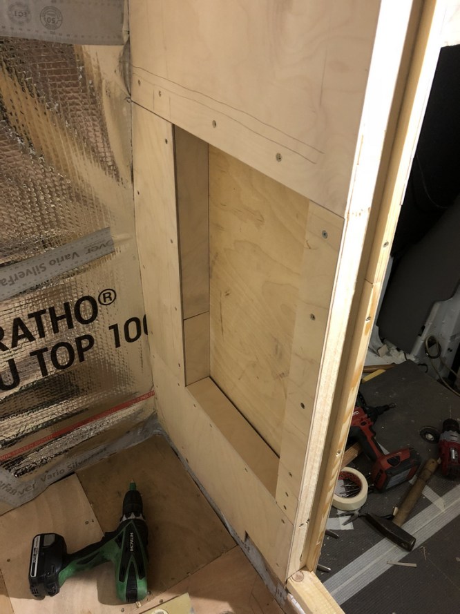 Vorweg möchte ich hier noch anmerken, dass dieser Part des Ausbaus der heikelste und aufwändigste dieses unseres Projektes war. Der gesamte Bereich „Feuchtraum“ hat uns ca. 260 Std. ohne Einkauf und Recherche, sowie eine Unmenge Nerven gekostet.