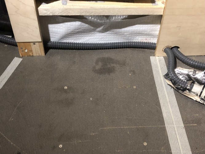 Zu einem späteren Zeitpunkt werden wir den gesamten Innenbereich mit PVC-Bahnen verkleben und die Stöße miteinander verschweißen, da die Plattenstöße mit Sicherheit im Laufe der Zeit aufgehen würden.