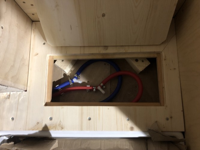 großer Freiraum, in dem wir die Kalt- und Warmwasserleitungen verlegen.