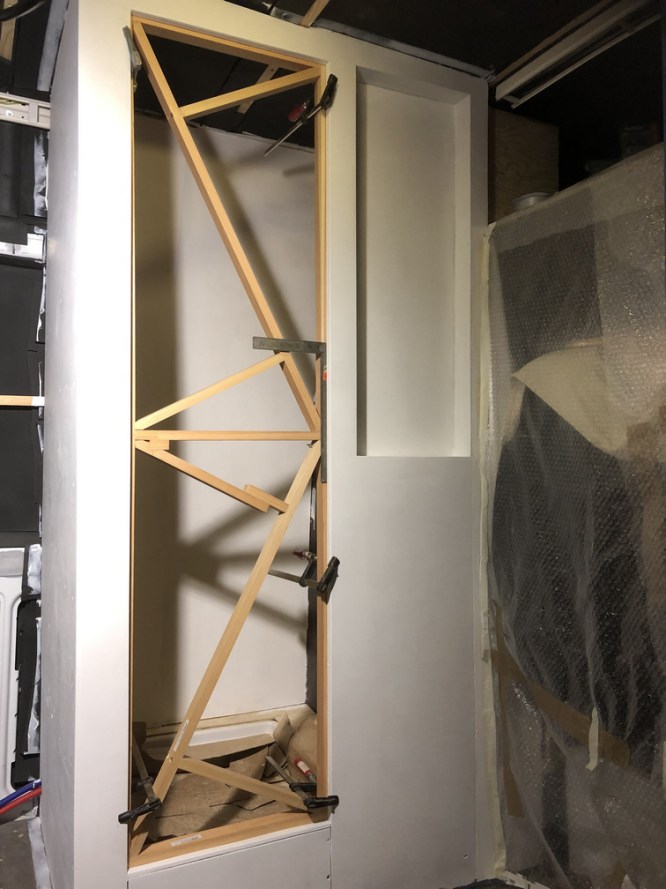 in der auch ein Installationsschacht verlaufen wird. Diese Außenteile werden ebenfalls vorher lackiert.