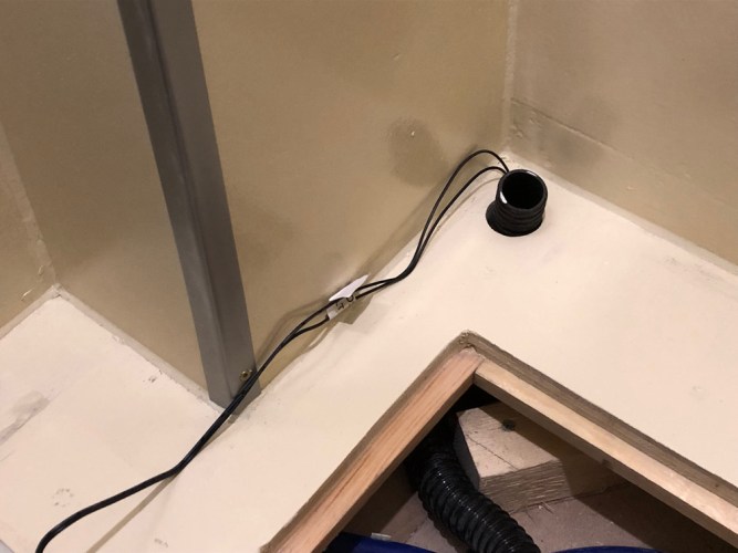 Abwasserschlauch verbunden, an die Hebeanlage angeschlossen und verbaut.