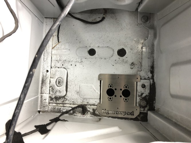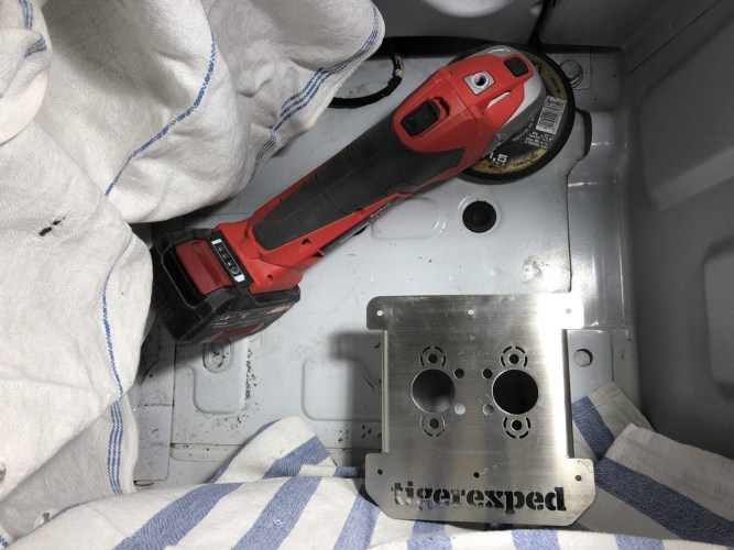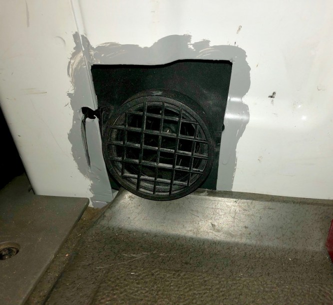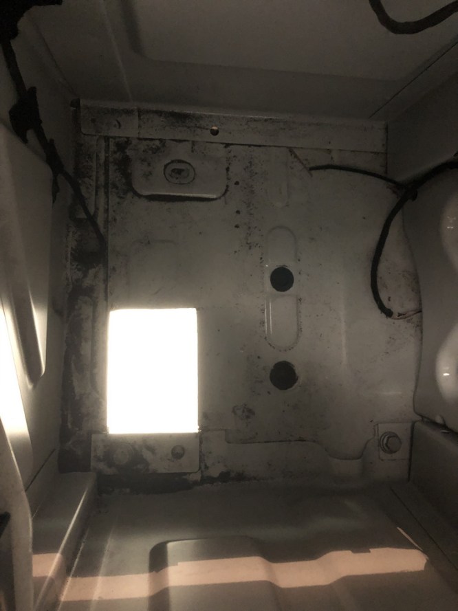 Um den Boiler unter die Beifahrersitzbank zu bekommen, musste die Trennwand der Sitzkonsole ausgeschnitten werden