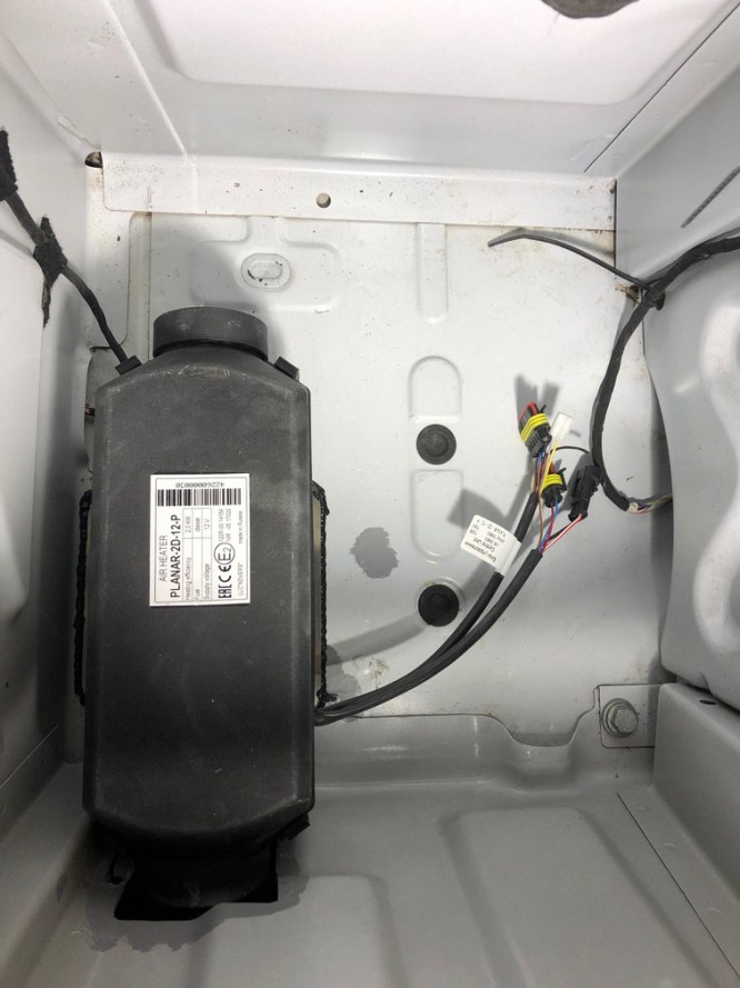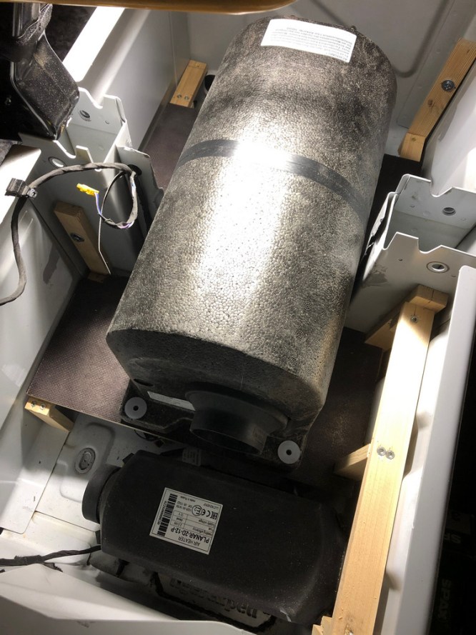 Erst unsere 3. Idee (nach der Garage und unter der Sitzbank), wo wir die Heizung und den Boiler verbauen würden, konnten wir den Einbau unter der Beifahrersitzbank umsetzen.