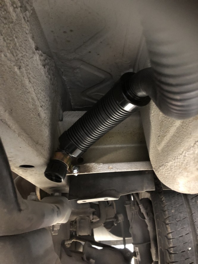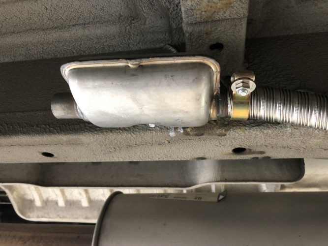 Die Abluft samt Schalldämpfer wird parallel zum Auspuff Richtung Hinterachse montiert.