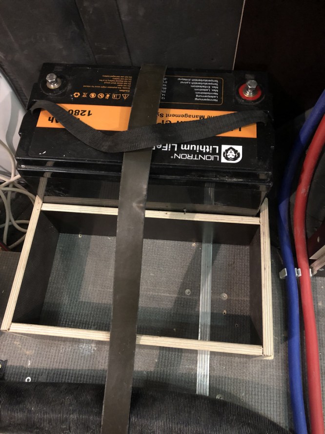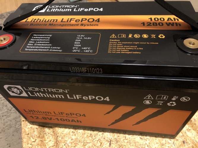 Dadurch haben wir uns keine großen Gedanken und Überlegung bzgl. Wohnraumbatterie gemacht und uns für einen 100 Ah LiFePo4 (Lithium-Eisenphosphat) 12,8V-Akku (von Liontron) entschieden, welchen wir, falls mal notwendig, jederzeit mit einem Zweiten erweitern können.