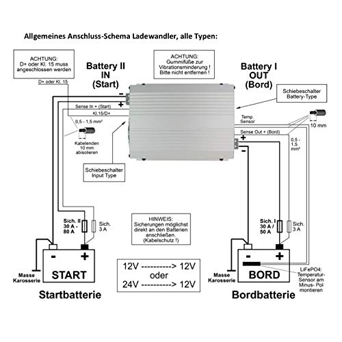 welche direkt an der Starterbatterie, wie auch an der Wohnraumbatterie, mittels einem 50A-Sicherungsautomaten abgesichert werden.