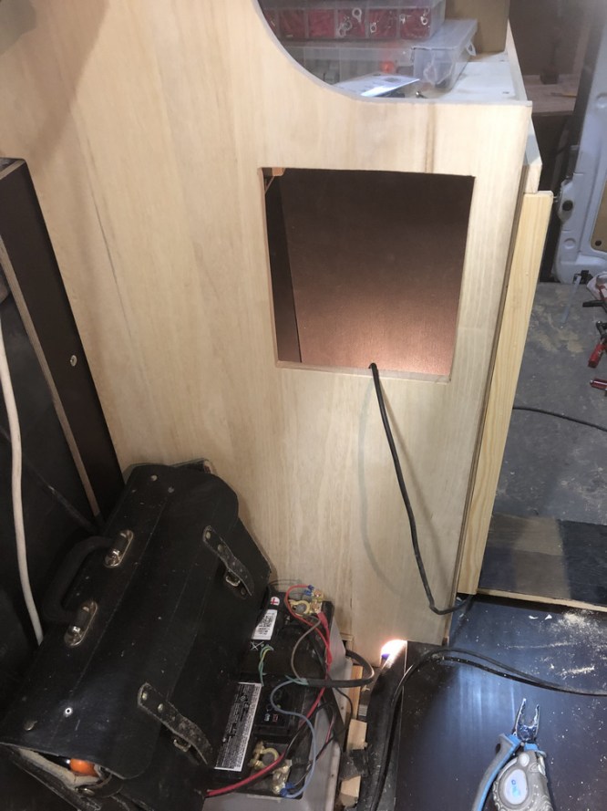 Beifahrerseitig wird im Bereich der Sitzbank eine Klappe in die Trennwand eingebaut, welche als Schmutzwäscheklappe dient.
