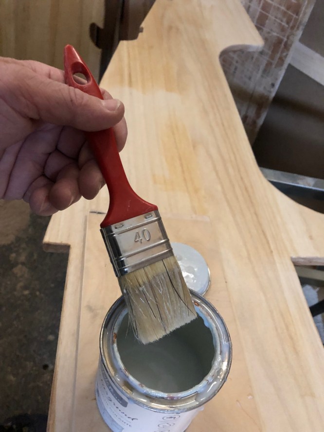 Zum Abschluss wird das Paulownia noch mittel eine Sperrgrundes vorbehandelt und mit Holzlasur in der Farbe Haselnuss gestrichen.