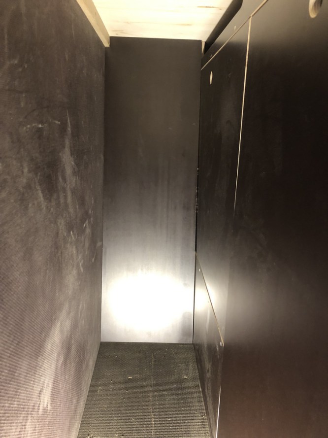Beifahrerseitig wird im Bereich der Sitzbank eine Klappe in die Trennwand eingebaut, welche als Schmutzwäscheklappe dient.
