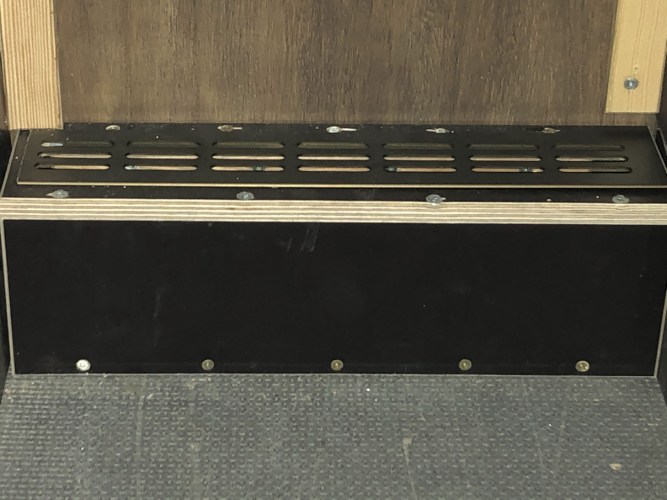 Darunter befinden sich die Heizungsschläuche der Planar, die Kalt- und Warmwasserverrohrung und Staufächer.