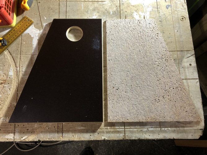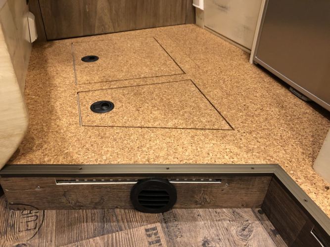 Das gesamte Podest wird danach mittels 5 mm starkem Kork ausgekleidet und wirkt auch als Dämmung gegen die Kälte. Außerdem ist ein Korkboden angenehm, wenn man barfüßig unterwegs ist.