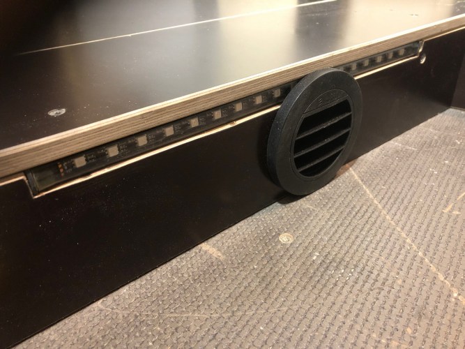 Für die Abdeckung und seitlichen Blenden dient eine 12 mm Siebdruckplatte.