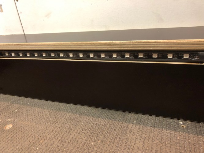 Stirnseitig haben wir diese Platte etwas eingefräst, um eine LED-Beleuchtung sowie den Heizungsrohrauslass zu integrieren.