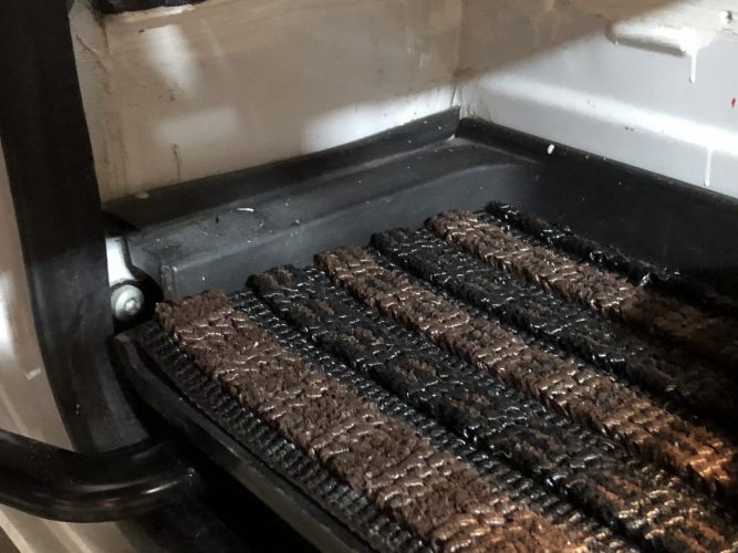 Der Einstieg erhält noch eine Matte, welche als Schmutzfang für den groben, ersten Dreck dienen soll.