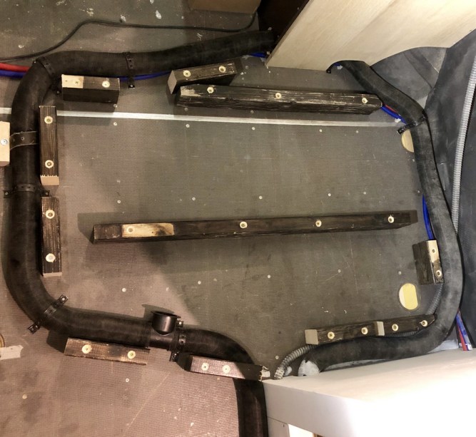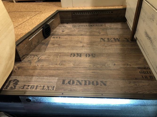 Die Heizungsrohre sollen in der kalten Jahreszeit wie eine Art Fußbodenheizung wirken. Sie verlaufen von der Beifahrer-Doppelsitzbank durch die Küche entlang des Feuchtraumes und anschließend querend bis zur beifahrerseitigen Sitzbank.