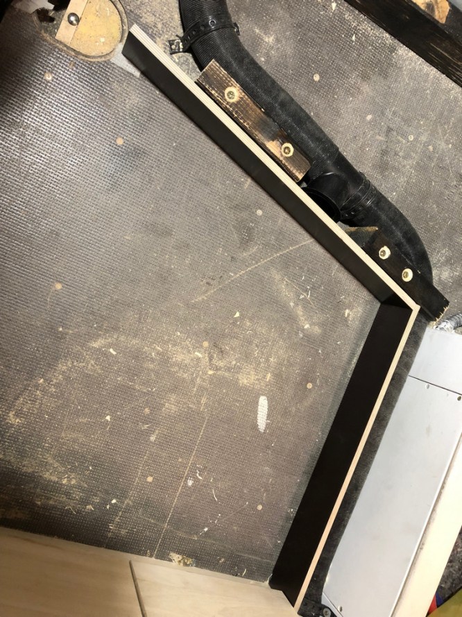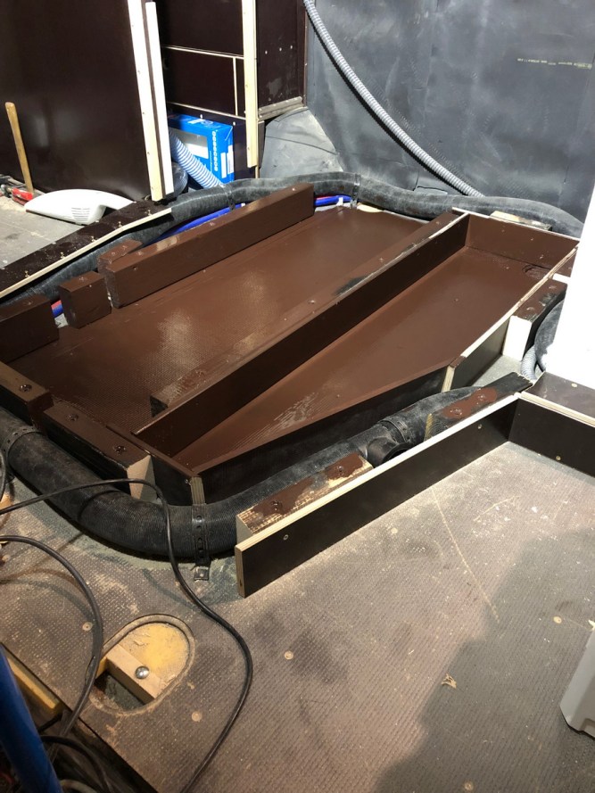 Für die Abdeckung und seitlichen Blenden dient eine 12 mm Siebdruckplatte.