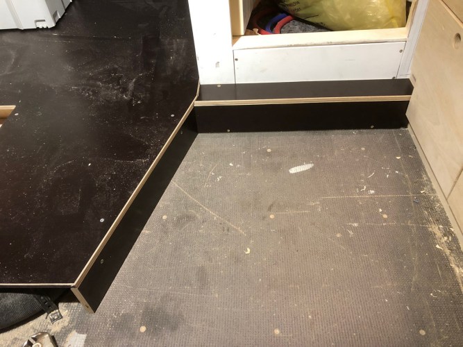 Da nun unsere Trennwände montiert sind und die Batterie verbaut ist, wissen wir die Abmessungen unserer Sitzbänke. Nun beginnen wir mit dem doppelten Boden.