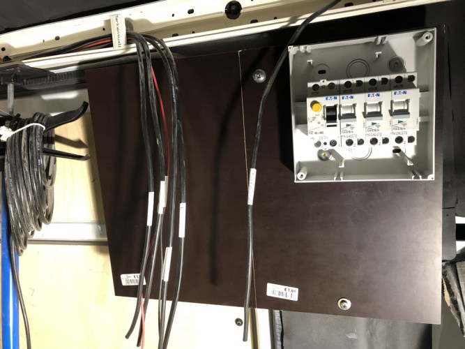 Der Schaltschrank war gleich links neben der Schiebetüre geplant, da darunter unsere Wohnraumbatterie verbaut war.