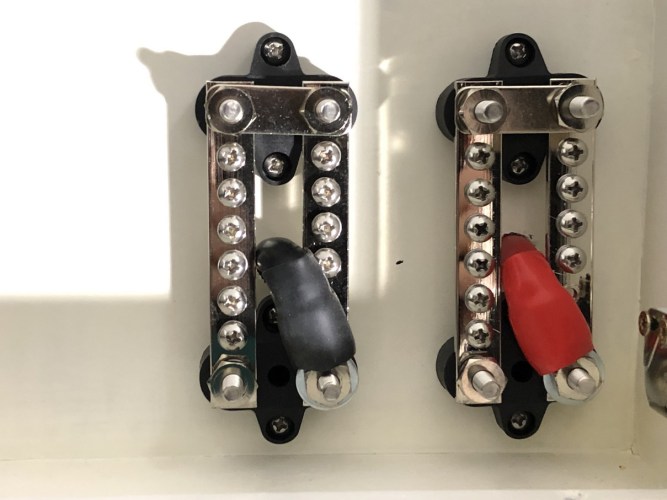 Wie schon bei dem Beitrag über die Einleitung des Wechselstromes „Endlich unter Strom – Landstromsteckdose, Vorrangschaltung und 230V-Absicherung“ erwähnt, haben wir ein Provisorium montiert, bis endgültig alle Kabel verlegt waren.