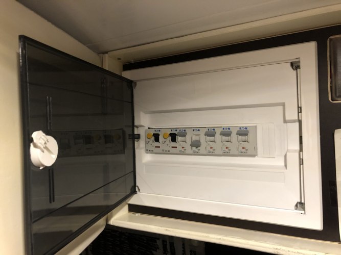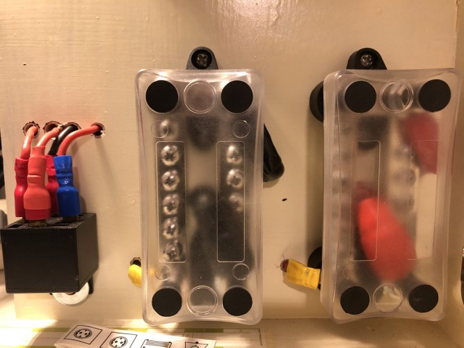 Wie schon bei dem Beitrag über die Einleitung des Wechselstromes „Endlich unter Strom – Landstromsteckdose, Vorrangschaltung und 230V-Absicherung“ erwähnt, haben wir ein Provisorium montiert, bis endgültig alle Kabel verlegt waren.
