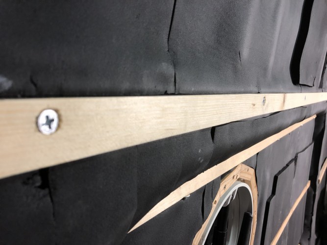 Um nun den Schaltschrank, und alle weiteren Hängeschränke, sicher verbauen zu können, mussten wir an der Seitenwand noch Montageleisten verschrauben, welche mittels Einziehmuttern und passenden Schrauben am Rahmen montiert wurde.