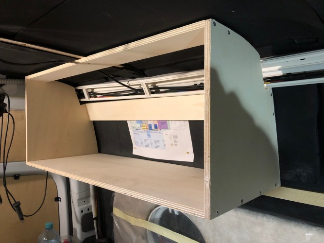 Da nicht der gesamte Oberbauschrank als Schaltschrank benötigt wird, haben wir noch eine Trennwand eingesetzt und somit ein zusätzliches Staufach für Klamotten geschaffen.
